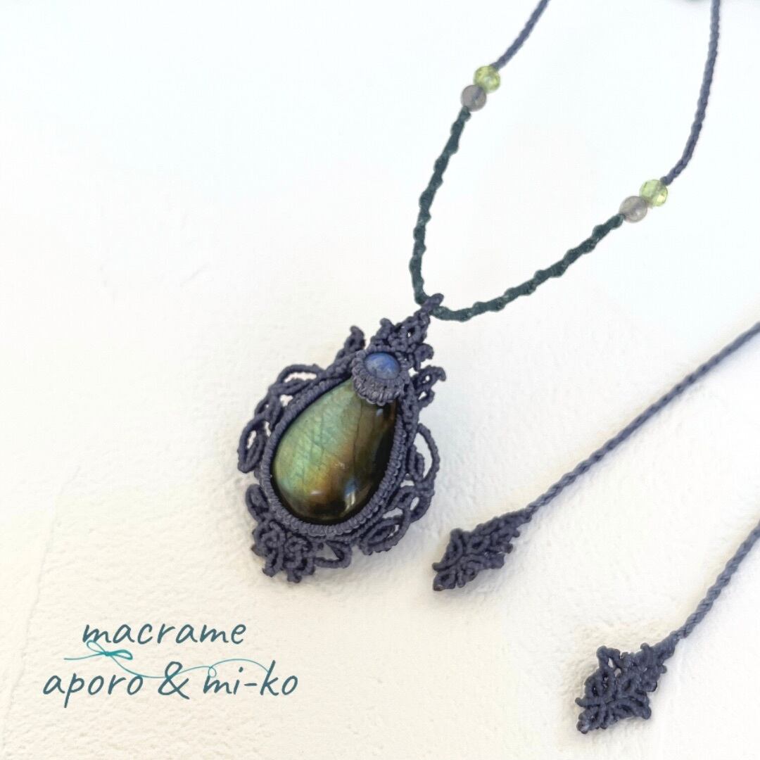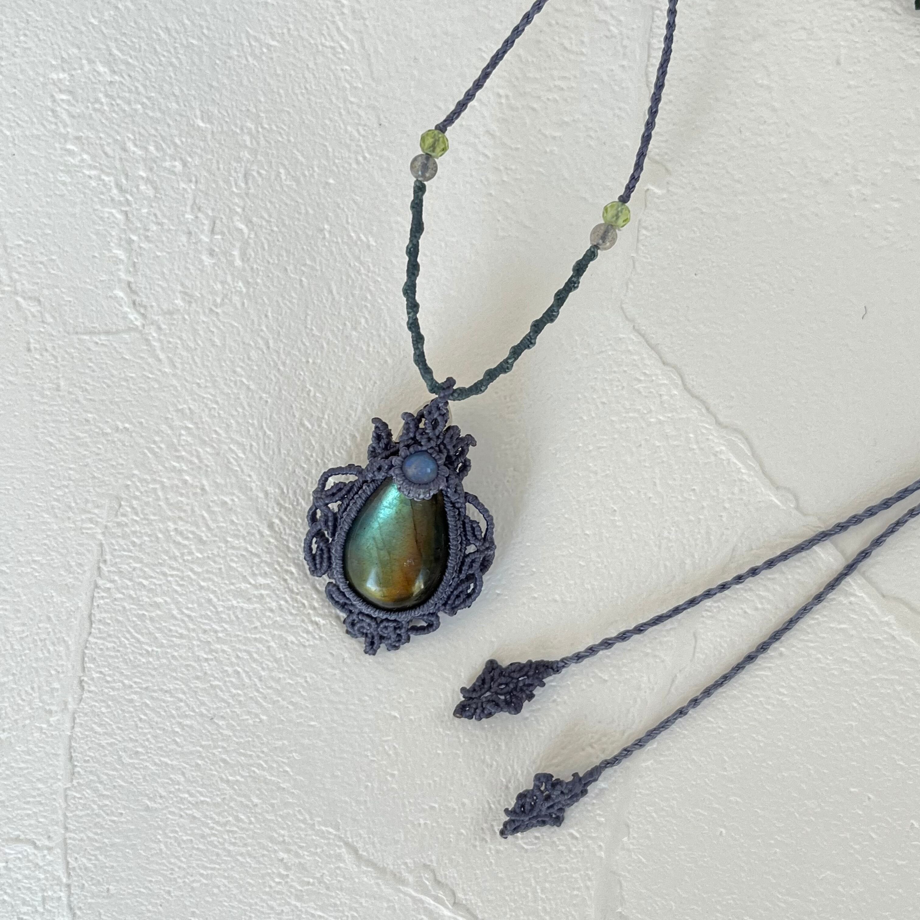 ラブラドライト レインボームーンストーン マクラメネックレス