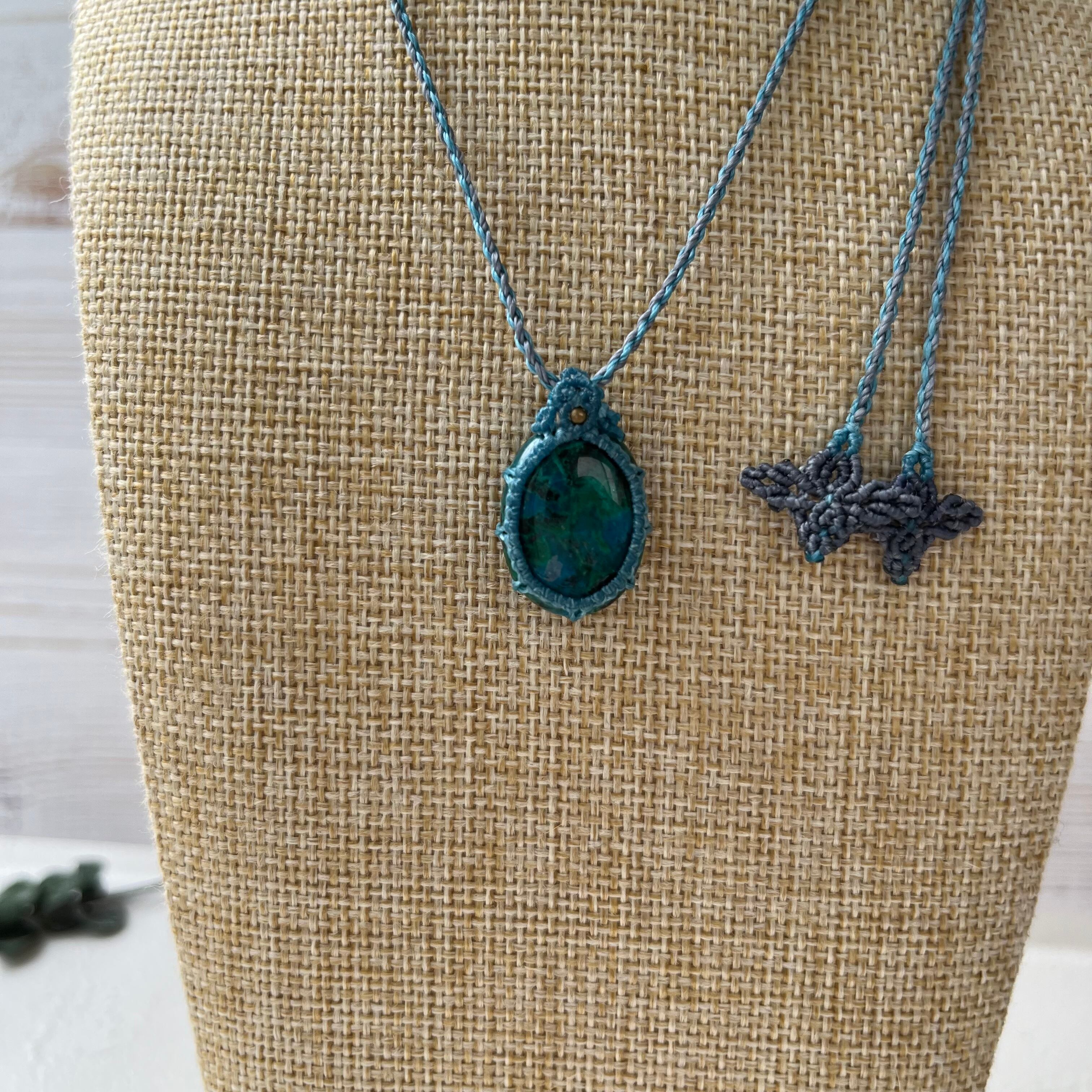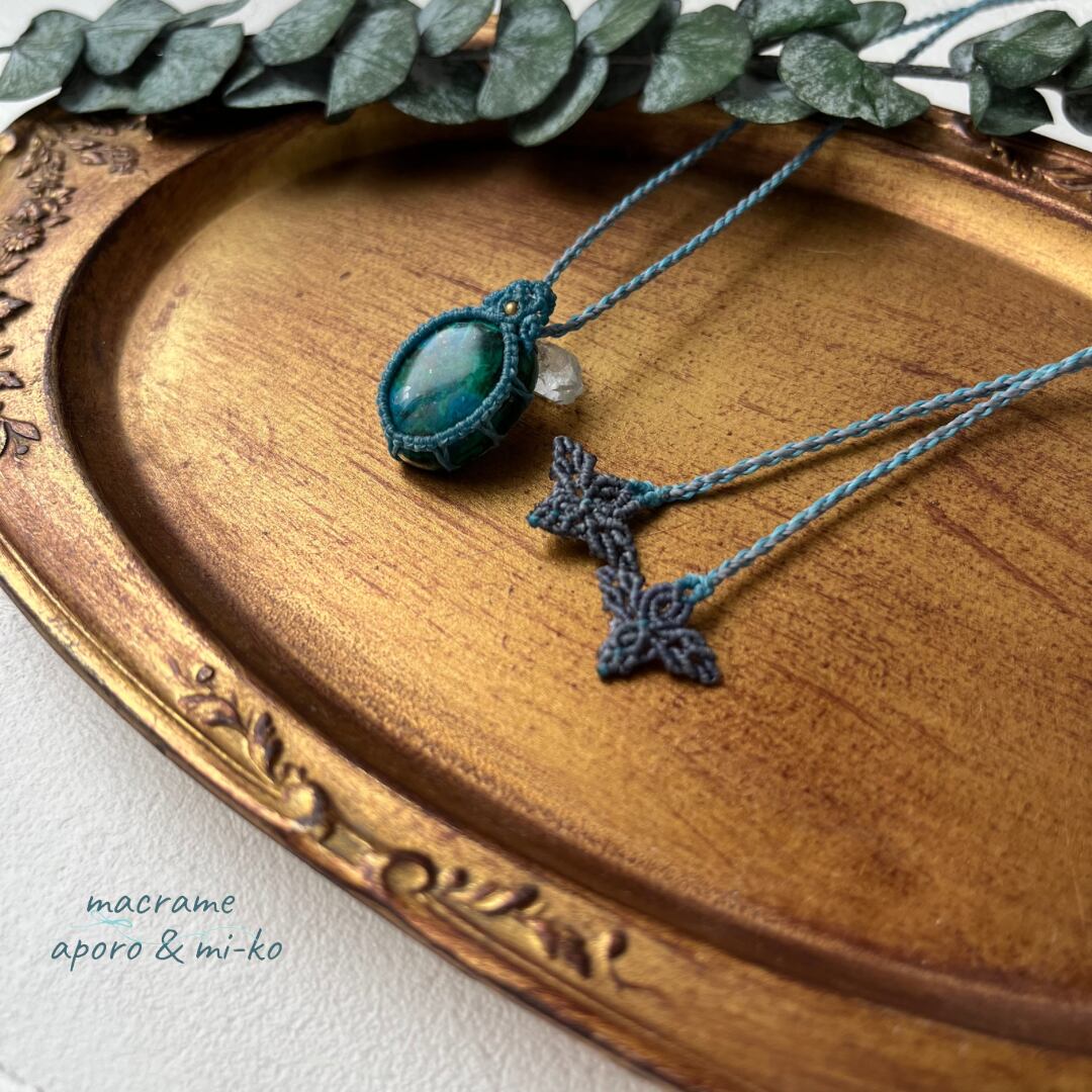☆マクラメネックレスはボンドを一切使用せずに、焼き留めをして仕上げています。