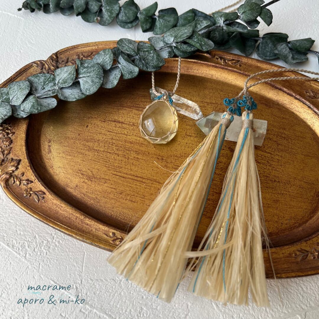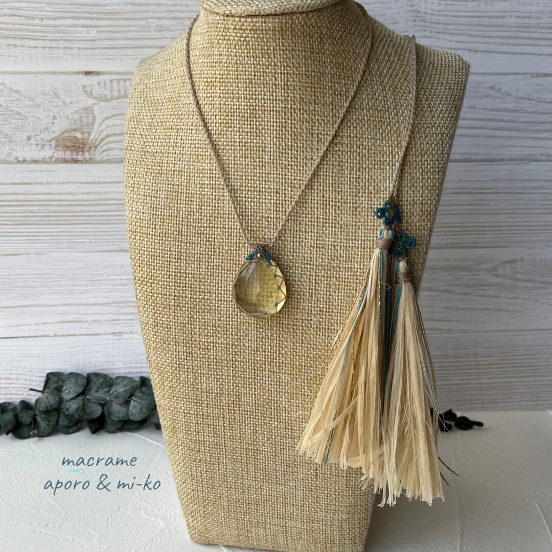 レモンクォーツ 精麻タッセル マクラメネックレス