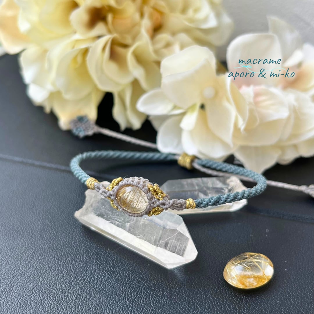 ルチルクォーツ ダブルねじり編み マクラメブレスレット