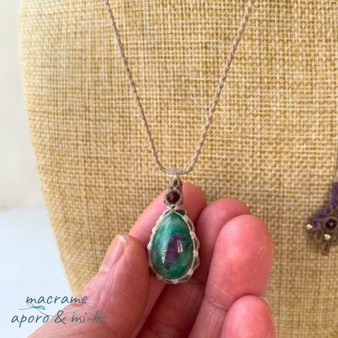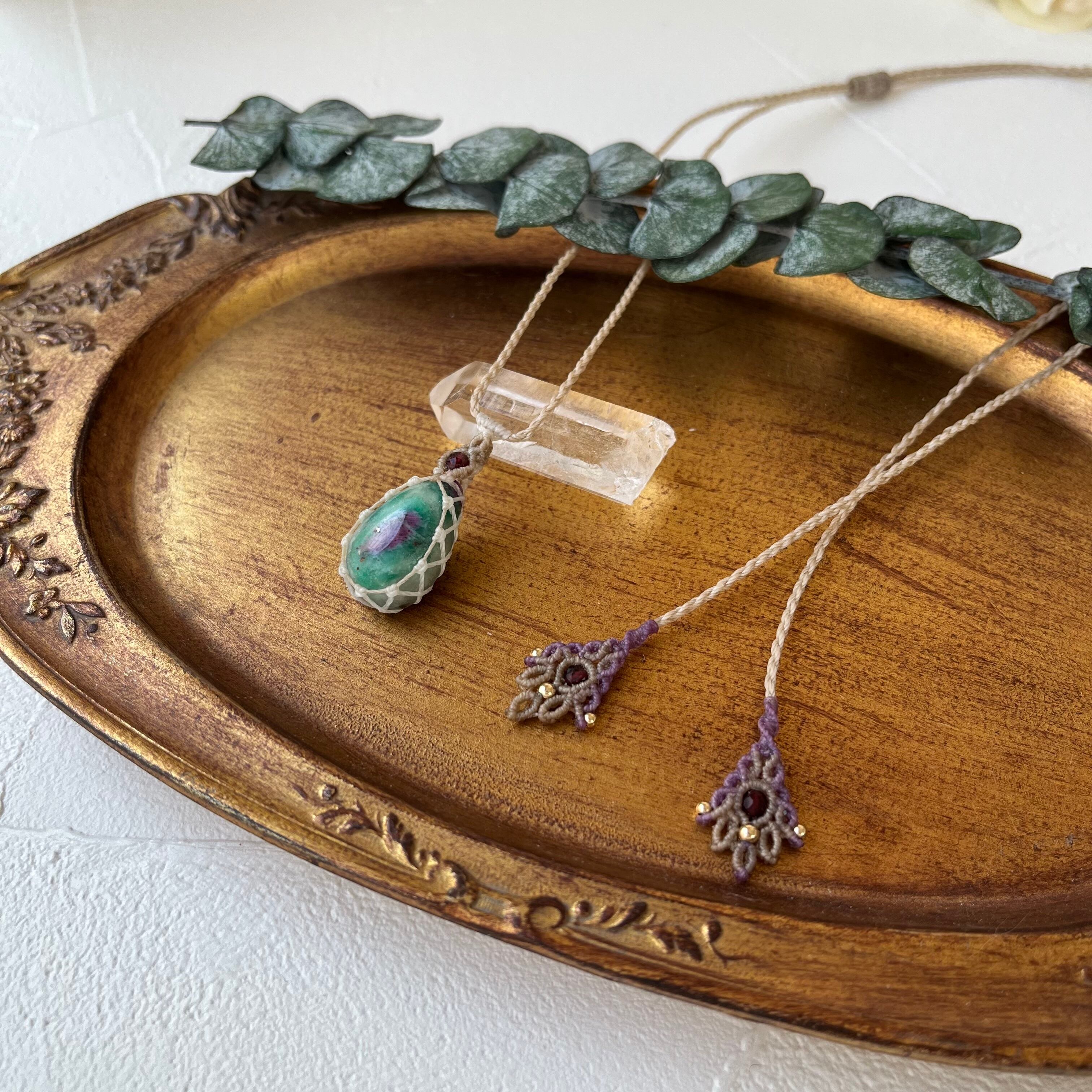 ☆マクラメネックレスはボンドを一切使用せずに、焼き留めをして仕上げています。